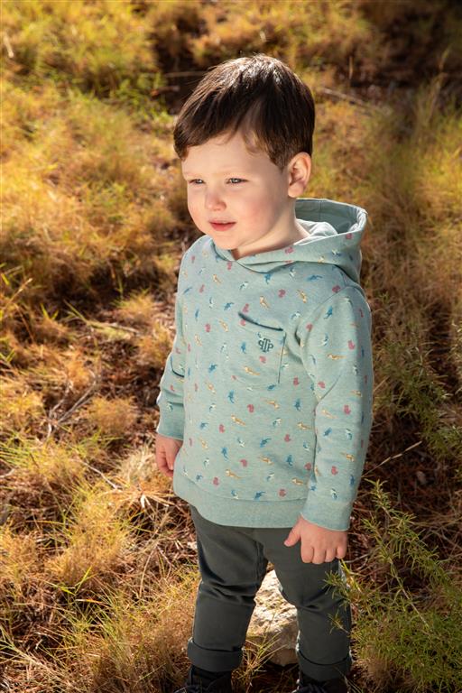 Sweat cardada, com capuz e bolso pequeno na zona do peito.